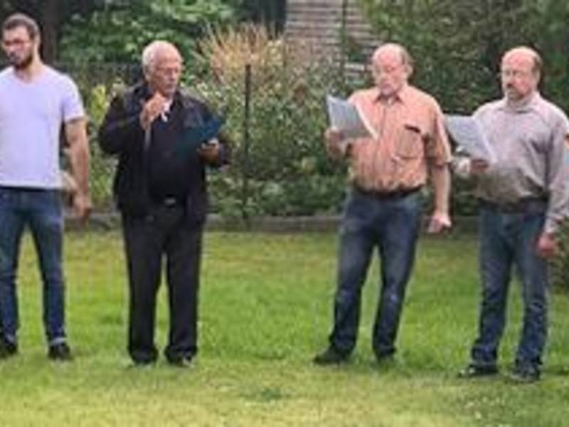 Die nächste Station war dann die Neuapostolische Kirche in der Greulichstraße, wo Hirte Uwe Lange alle Anwesenden auf der großen Rasenfläche begrüßte. Ein Männerchorquartett besang dann mit den Liedern "Herr, Gott und Schöpfer" und "Herr, der Welten" die Größe Gottes. Dann wurde ein von Geschwistern gesponserter Baum gepflanzt und anschließend eine Kirchenführung angeboten.